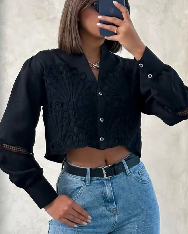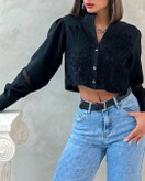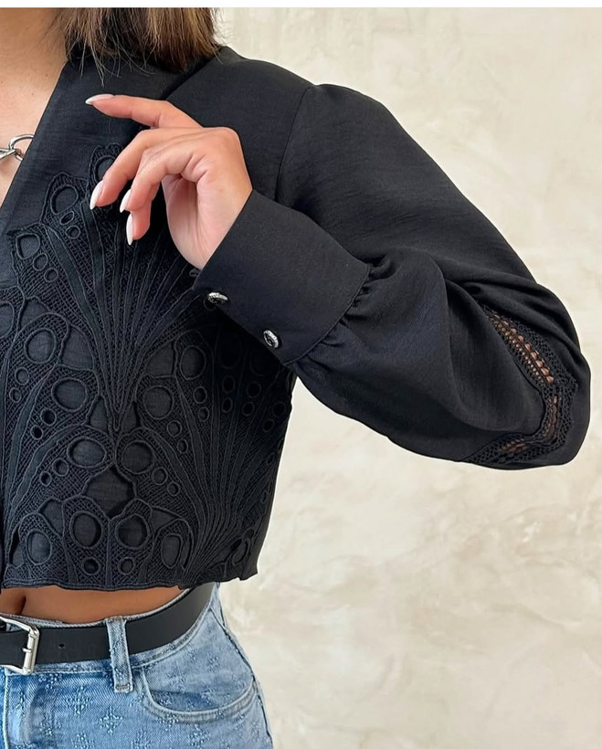 بلوز مشکی گیپور کراپ